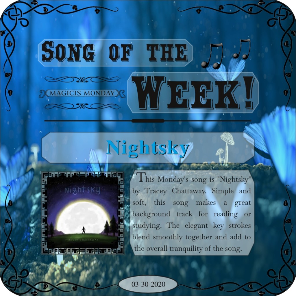 This Monday’s song is “Nightsky” by Tracey Chattaway. Simple and soft, this song makes a great background track for reading or studying. The elegant key strokes blend smoothly together and add to the overall tranquility of the song.