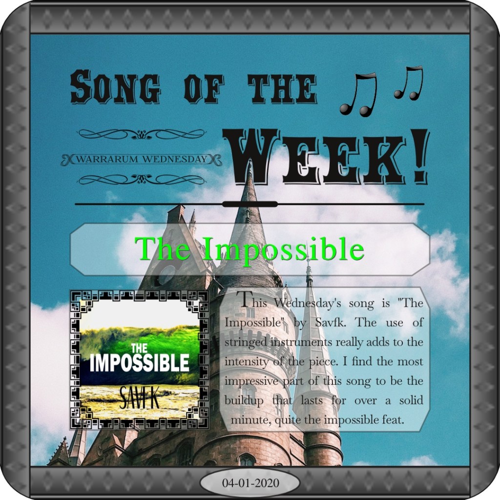 This Wednesday’s song is “The Impossible” by Savfk. The use of stringed instruments really adds to the intensity of the piece. I find the most impressive part of this song to be the buildup that lasts for over a solid minute, quite the impossible feat.