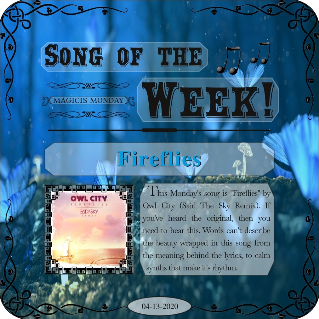 This Monday’s song is “Fireflies” by Owl City (Said The Sky Remix). If you’ve heard the original, then you need to hear this. Words can’t describe the beauty wrapped in this song from the meaning behind the lyrics, to calm synths that make it’s rhythm.