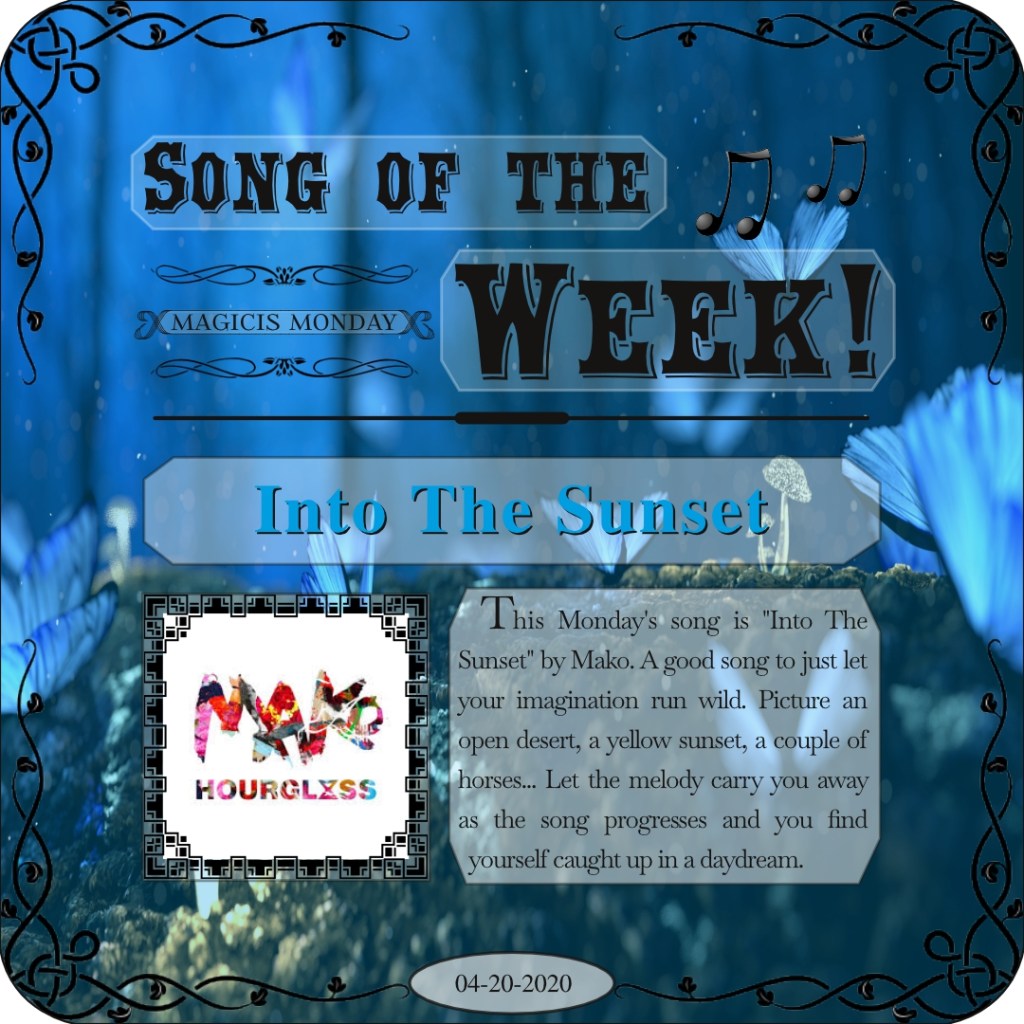 This Monday’s song is “Into The Sunset” by Mako. A good song to just let your imagination run wild. Picture an open desert, a yellow sunset, a couple of horses… Let the melody carry you away as the song progresses and you find yourself caught up in a daydream.