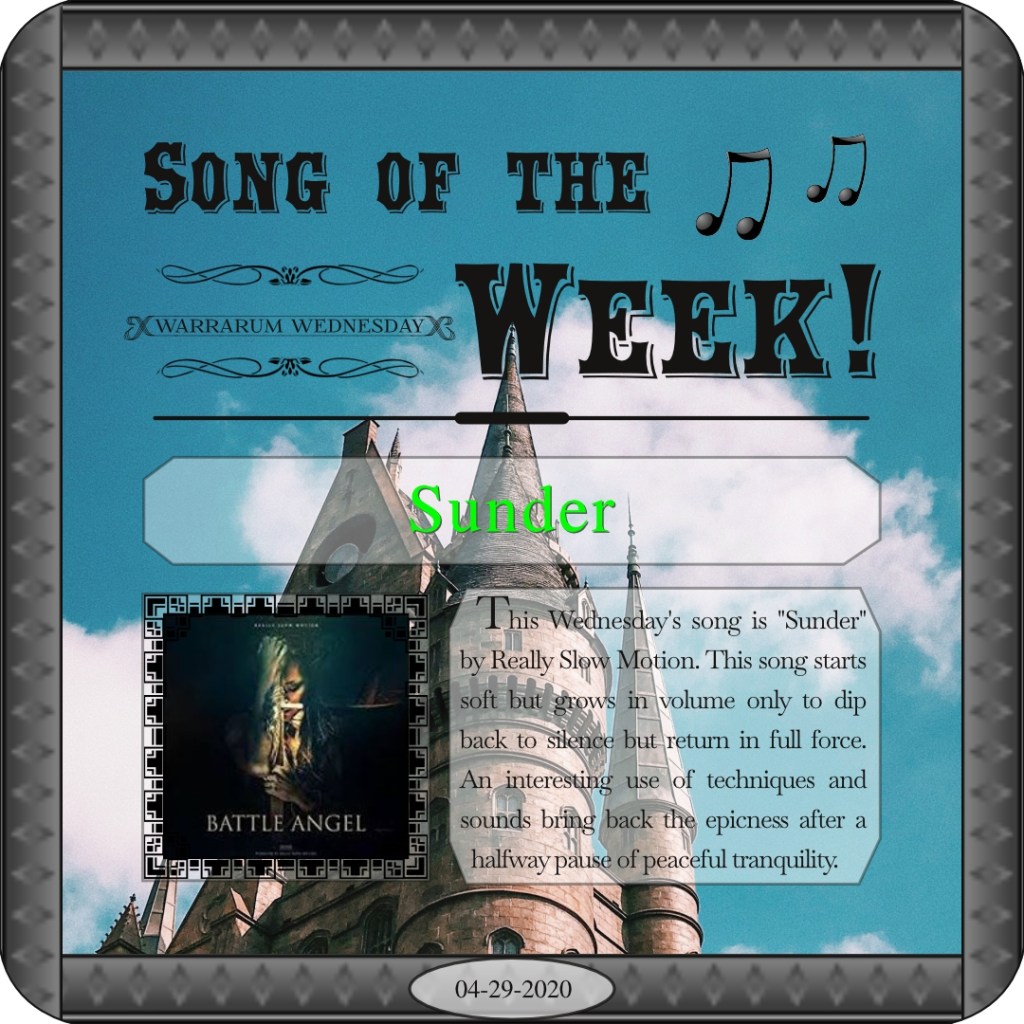 This Wednesday’s song is “Sunder” by Really Slow Motion. This song starts soft but grows in volume only to dip back to silence but return in full force. An interesting use of techniques and sounds bring back the epicness after a halfway pause of peaceful tranquility.