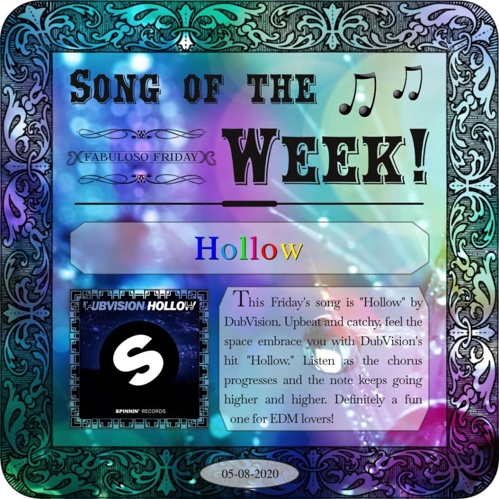 This Friday’s song is “Hollow” by DubVision. Upbeat and catchy, feel the space embrace you with DubVision’s hit “Hollow.” Listen as the chorus progresses and the note keeps going higher and higher. Definitely a fun one for EDM lovers!